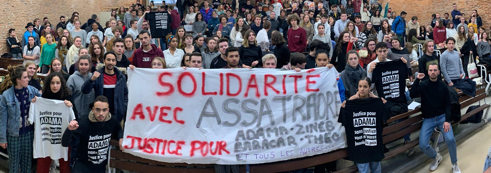 Nous dénonçons ainsi le racisme d’Etat qui se matérialise notamment par des violences policières systématiques dans les quartiers populaires, par des politiques migratoires répressives, par des lois islamophobes, ou encore par un traitement différencié des miettes de l’empire colonial français que sont les départements et régions d’outremer. Nous nous opposons ainsi au féminisme blanc bourgeois qui s’exprime dans la politique pseudo féministe actuelle du gouvernement français.